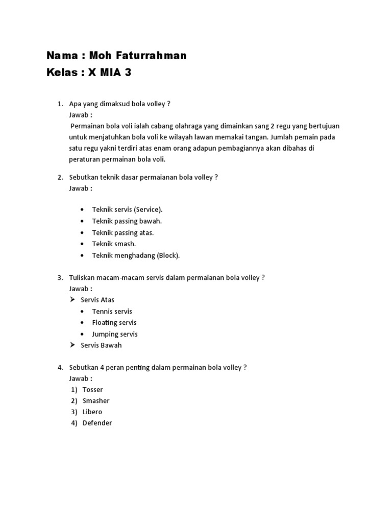 Check spelling or type a new query. Tuliskan macam macam teknik dasar permainan bola voli. We did not find results for: Maybe you would like to learn more about one of these?
