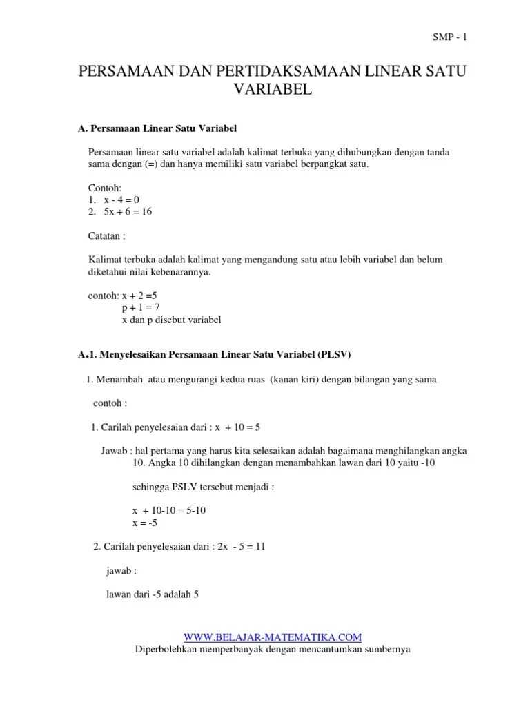 Soal dan pembahasan persamaan linear satu variabel, soal cerita persamaan linear.